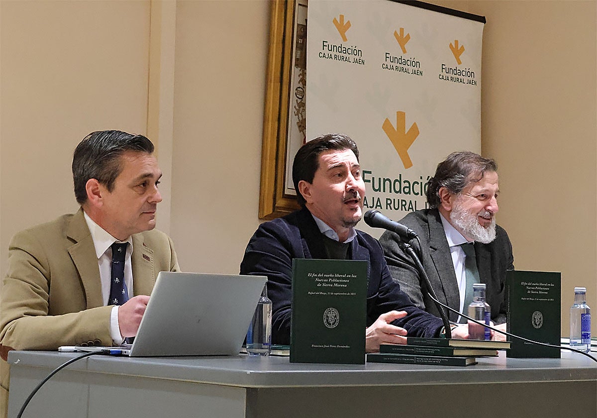 Durante el evento, el autor estuvo acompañado por Luis Jesús García-Lomas, gerente de la Fundación, y por los alcaldes Cristóbal Pérez, de La Carolina, y Miguel Ángel Manrique, de Arquillos. En sus intervenciones, García-Lomas destacó la importancia de la publicación, que «plasma un episodio trascendental en la historia de La Carolina y Arquillos».
